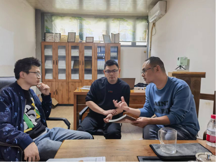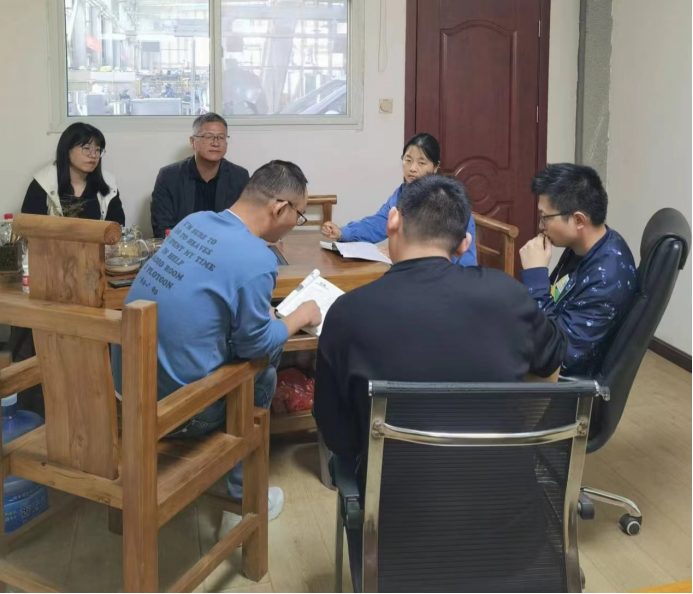10月6日下午,TYC234CC太阳成集团“高职院校智能制造专业群基于“产学研用”融合理念的双元制教材开发研究”项目小组一行5人走进漯河市汇博自动化机械设备有限公司,就《PLC应用技术(西门子S7-1200)》教材建设再次进行深入研讨。公司执行董事兼总经理苏雨、监事牛淼淼参加。