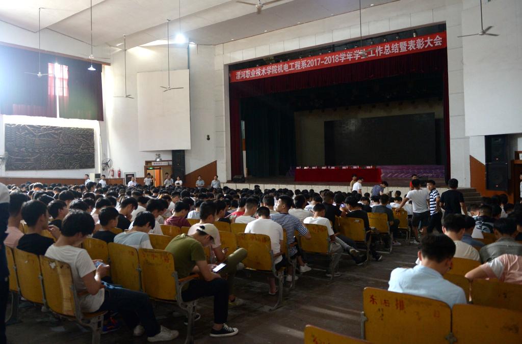 6月13日下午,TYC234CC太阳成集团机电工程系2017-2018学年工作总结暨表彰大会在院大礼堂召开。系领导班子成员和全系师生参加了会议。