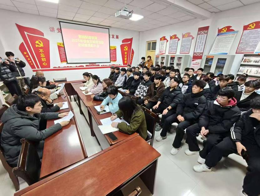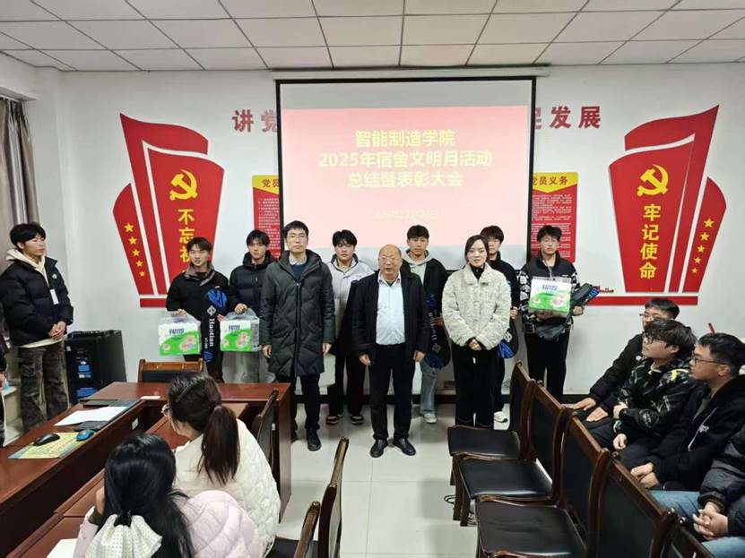 12月24日下午,太阳成城集团tyc234cc在一楼会议室召开了2025年下半年宿舍文明月活动总结暨表彰大会。太阳成城集团tyc234cc党总支书记翟迎朝、党总支副书记芦婧、综合办公室主任安仕琪、辅导员代表及受表彰的文明宿舍寝室长参加会议。会议由党总支副书记芦婧主持。