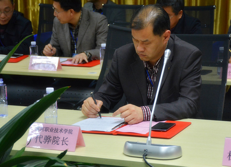2016年4月11日,受郑州富士康邀请,副院长代骅参加了在郑州富士康举行的校企合作签约仪式,协议合作内容涵盖了机器人、SMT等多个领域,标志着我院与富士康集团的合作已在中原大地扎根成长。同时,由于校企双方良好的合作关系,郑州富士康特向我院颁发了优秀合作院校锦旗一面。出席仪式的还有省教育厅及其他院校的代表。