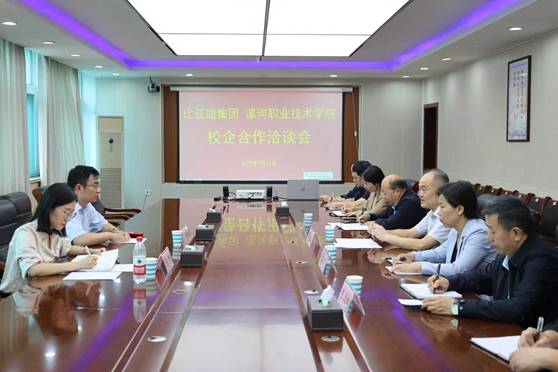 9月25日,比亚迪集团华中区人事总监陈静一行到TYC234CC太阳成集团洽谈校企合作工作。学院院长薛存心出席洽谈会,比亚迪集团郑州工业园人事经理任永斌以及学院相关部门负责同志参加洽谈会。会议由学院副院长石晓主持。