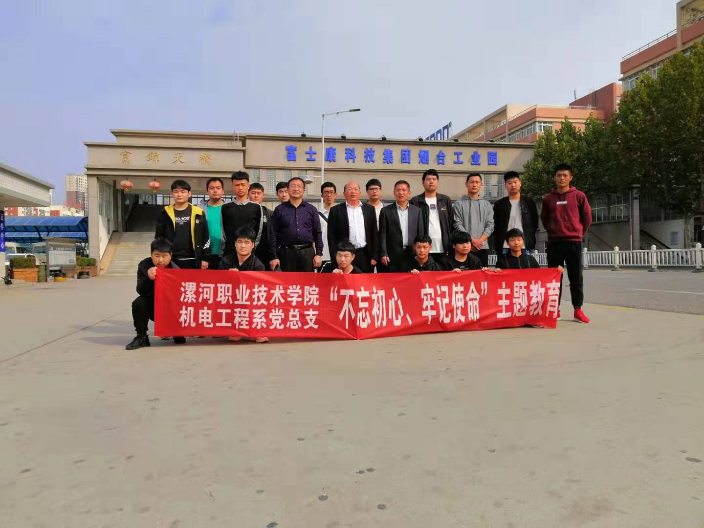 10月20日,机电工程系党总支书记翟迎朝专程赴烟台富士康工业园区,看望慰问在这里进行实习的2017级学生,为实习的学生党员、入党积极分子和学生代表共110多人讲了一堂生动的党课。