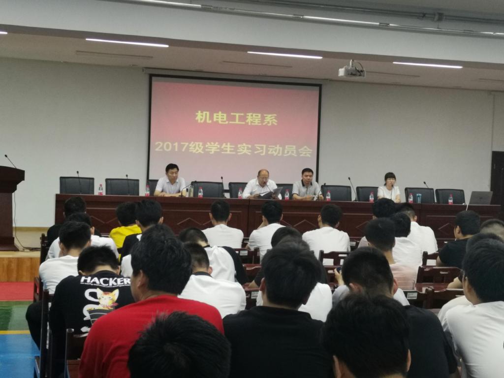 6月20日下午,机电工程系在行政办公楼7楼会议室分专业召开了2017级实习动员大会。我系翟迎朝书记、赵建功主任、全体教师及2017级学生参加了大会,会议由系副主任冯凯主持。