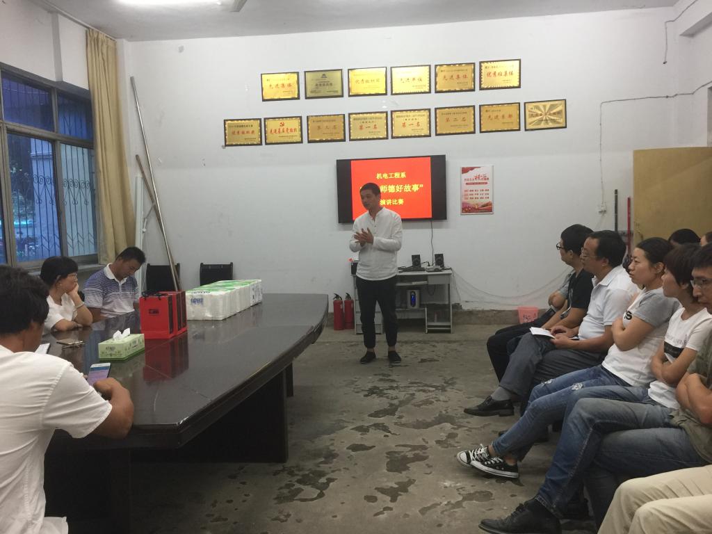 2018年9月12日,机电工程系在系会议室举行教师节“讲述师德好故事”主题演讲比赛。系领导班子和全体教师参加这次活动。