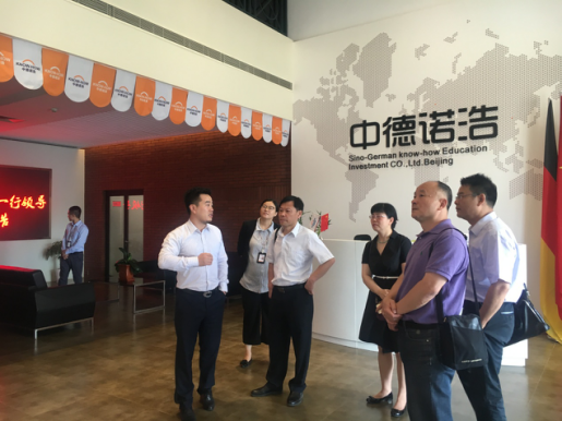 6月15日,TYC234CC太阳成集团党委委员、副院长王变奇,学院招生处处长黄宏伟、实训中心主任张勃及机电系主任娄琳、副主任冯凯一行访问了中德诺浩(北京)教育投资有限公司(以下简称“中德诺浩”),并就双方合作事宜与中德诺浩副总裁楚萌及华北大区负责人杨丽、运营部负责人王婷婷、学术部负责人王西东进行座谈交流。