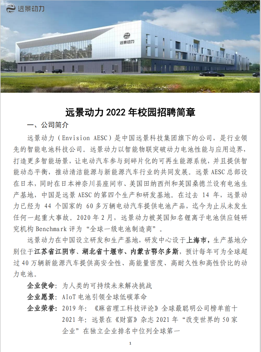 远景动力校园招聘简章2023