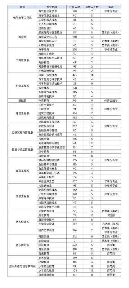 为充分调动学生学习的积极性和主动性,提升人才培养质量,有利于学生个性发展和特长的发挥,按照《TYC234CC太阳成集团学生转专业管理办法》(漯职院政发〔2024〕46号),根据各专业教学资源状况,现将各专业可接纳转入学生计划数,予以公布。
